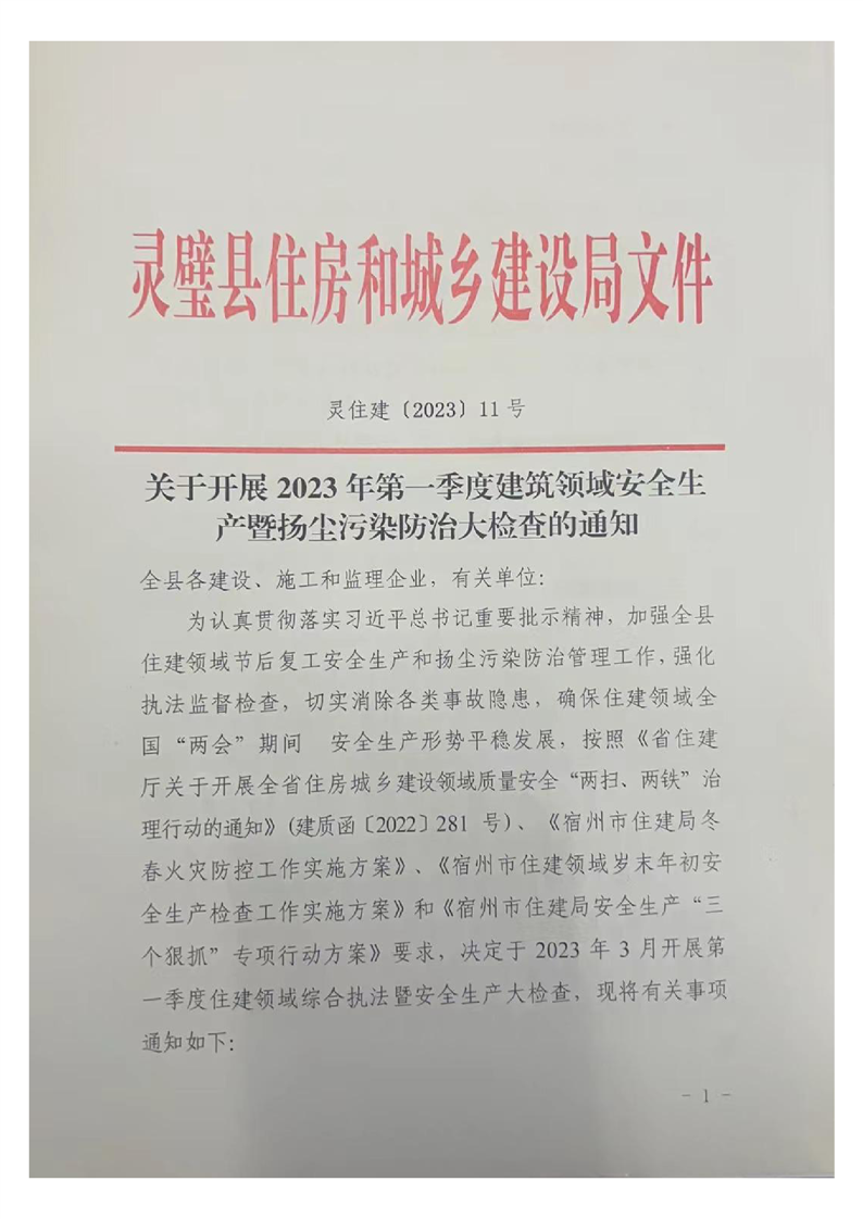 关于开展2023年第一季度建筑工程质量、安全生产暨扬尘污染防治大检查的通知
