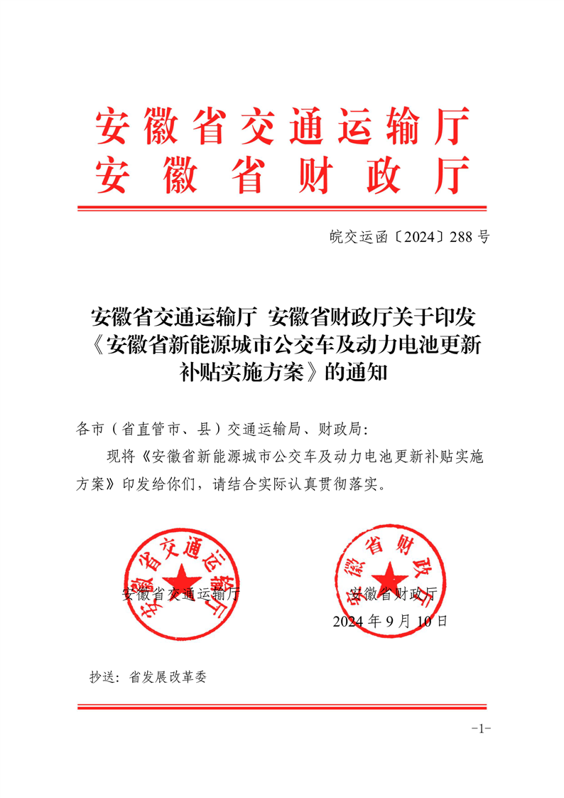 安徽省交通运输厅安徽省财政厅关于印发《安徽省新能源城市公交车及动力电池更新补贴实施方案》的通知 |