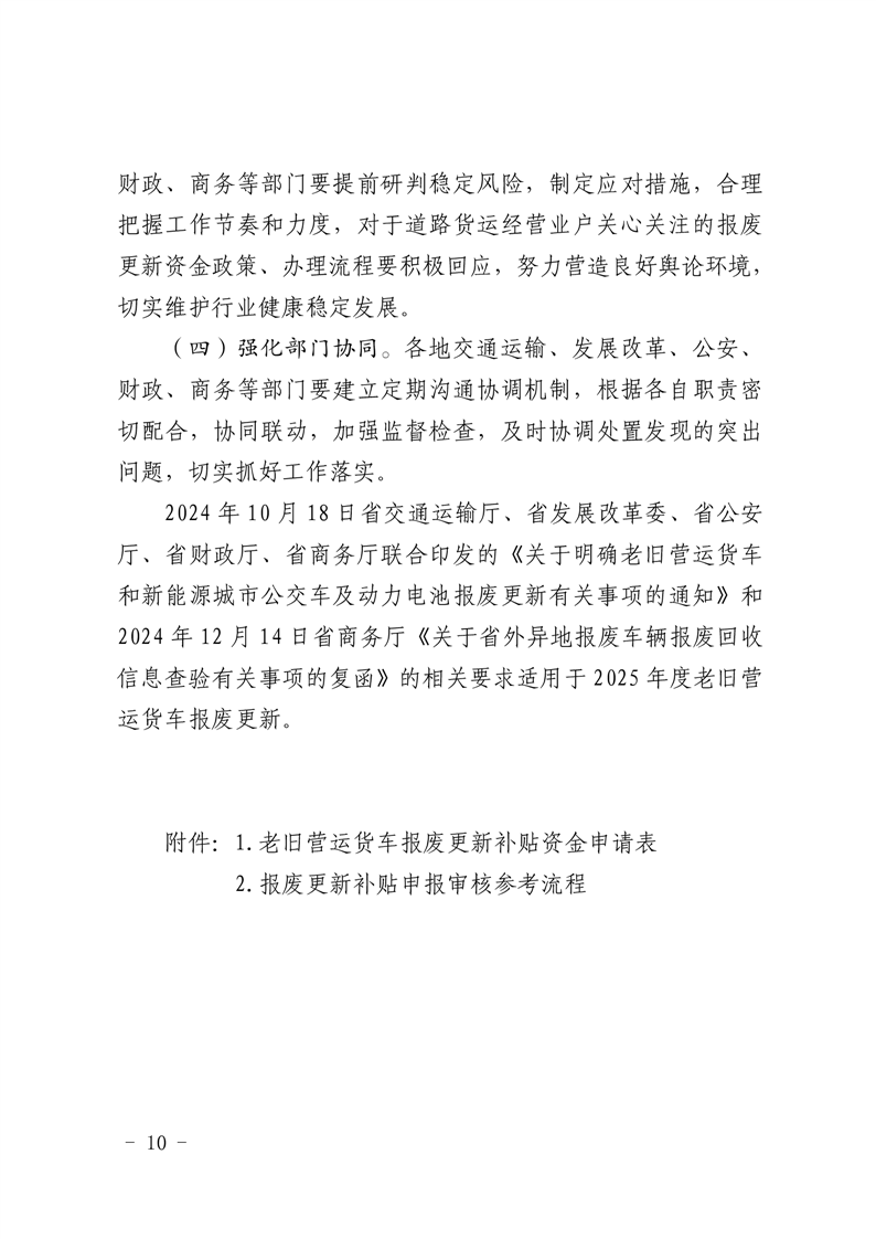 安徽省交通运输厅安徽省发展和改革委员会安徽省公安厅安徽省财政厅安徽省商务厅关于印发《安徽省2025年老旧营运货车报废更新工作实施细则》的通知 |