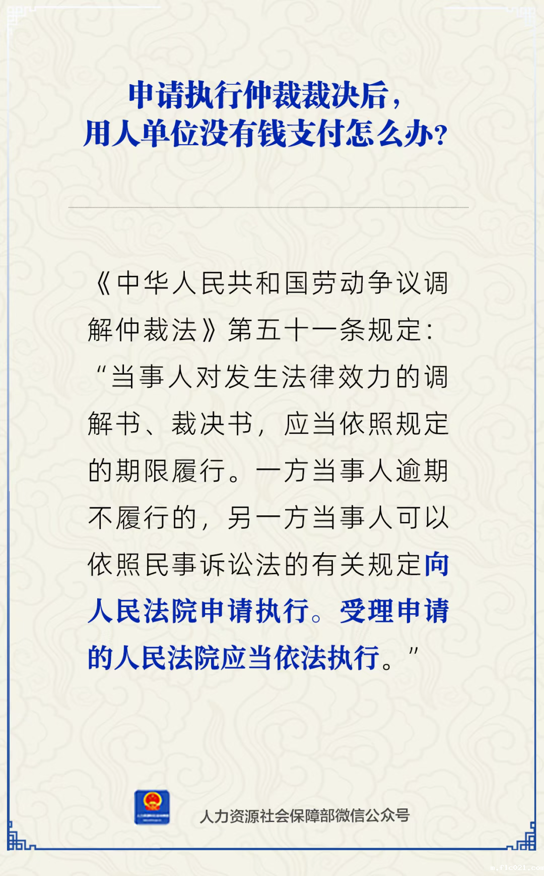 申请执行仲裁裁决后用人单位没有钱支付怎么办? |